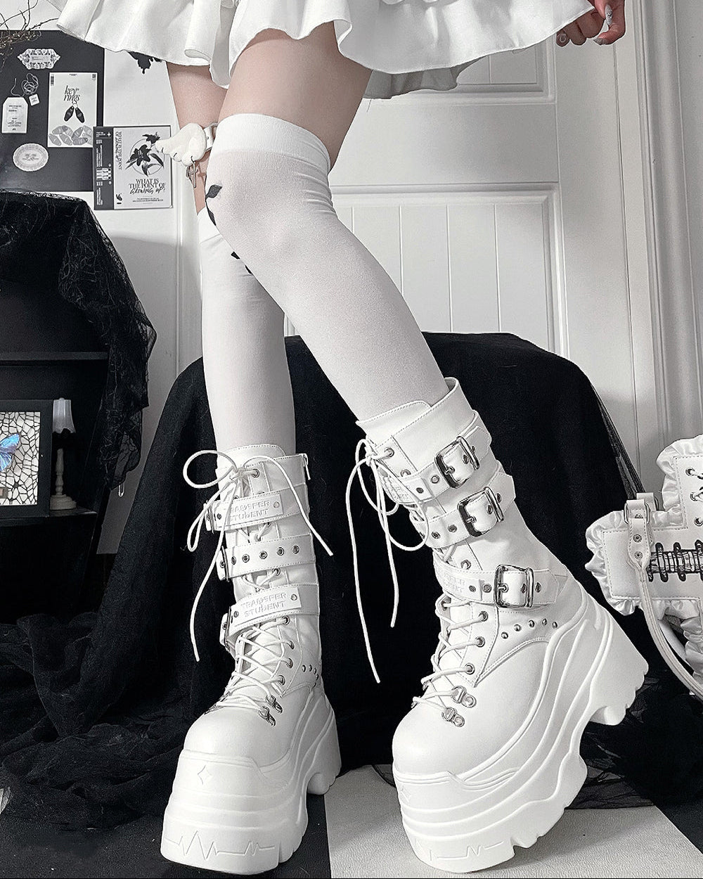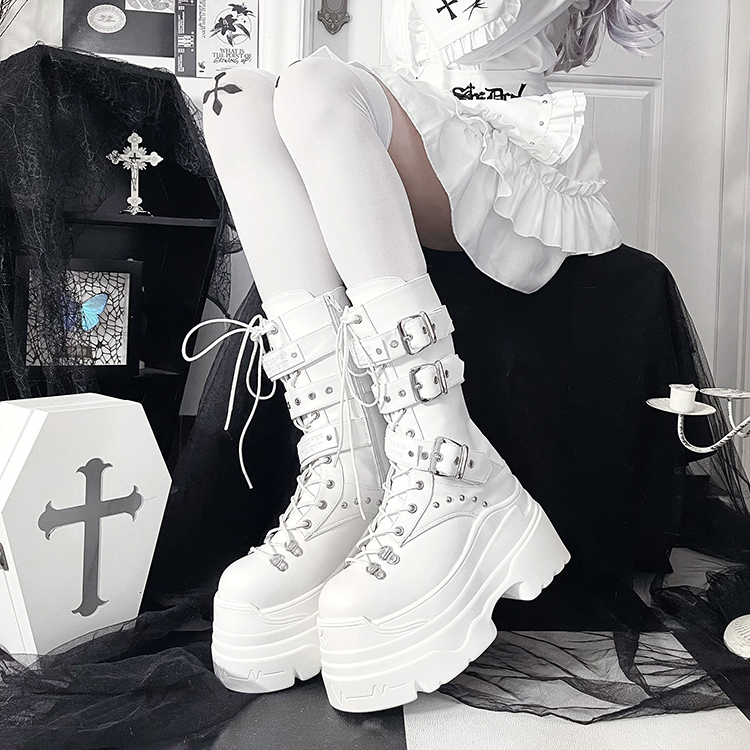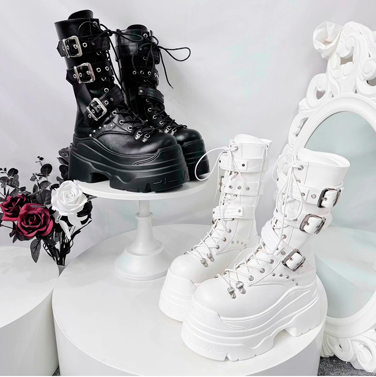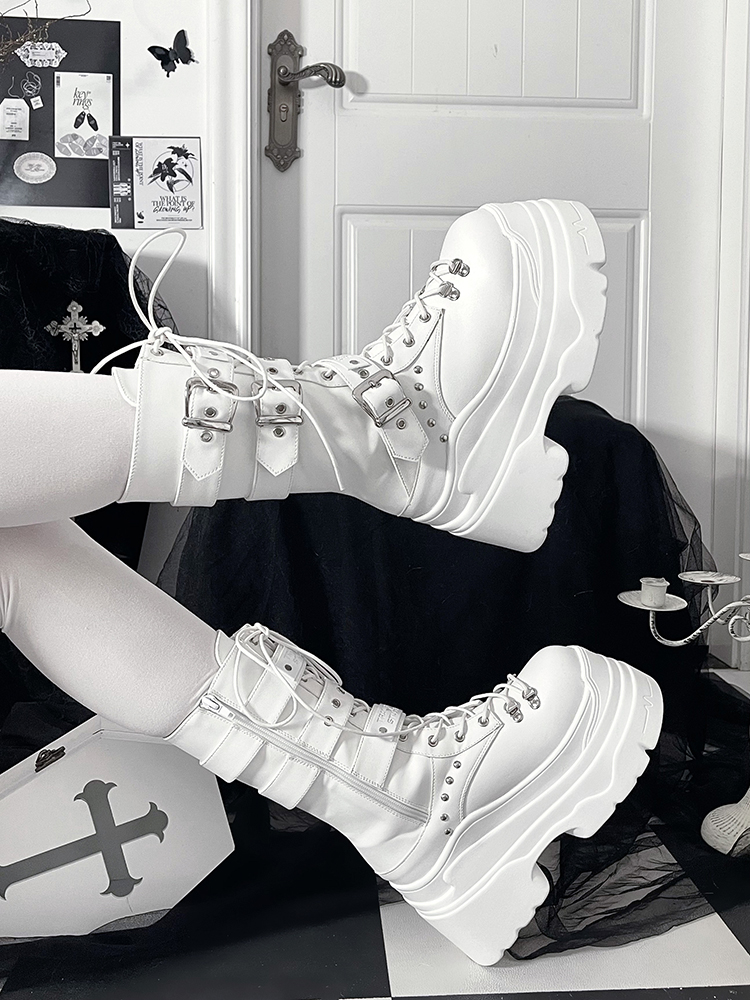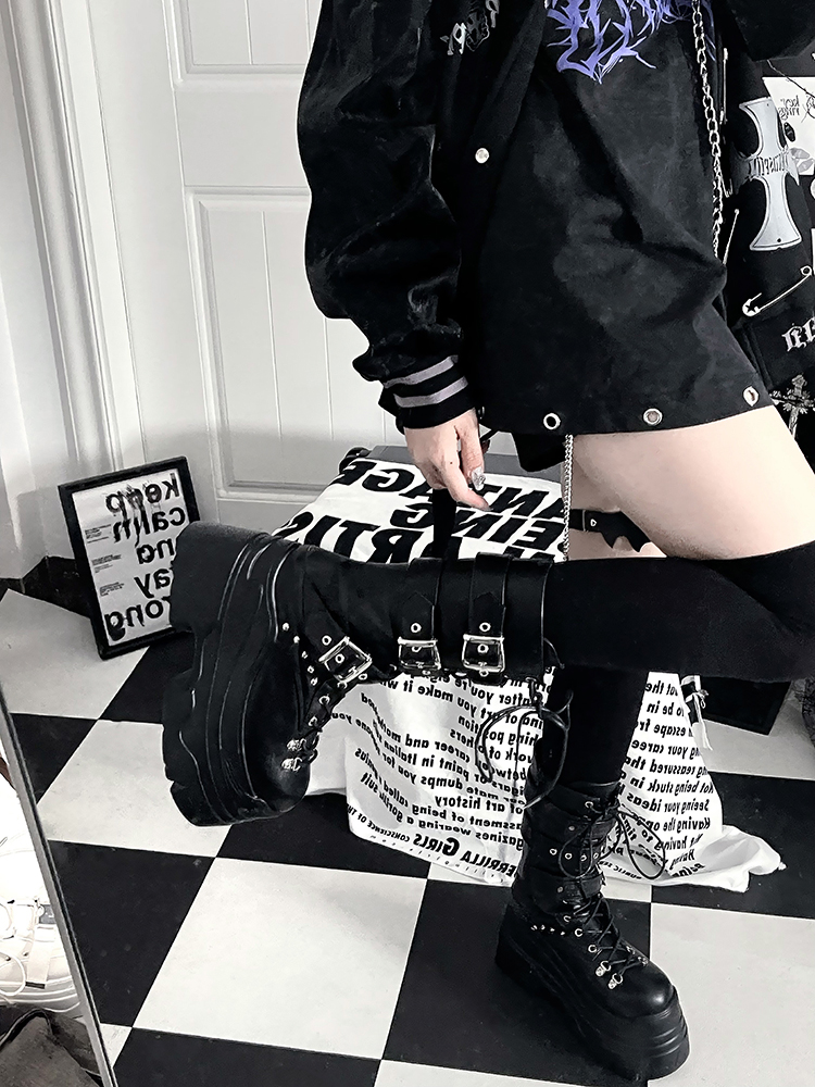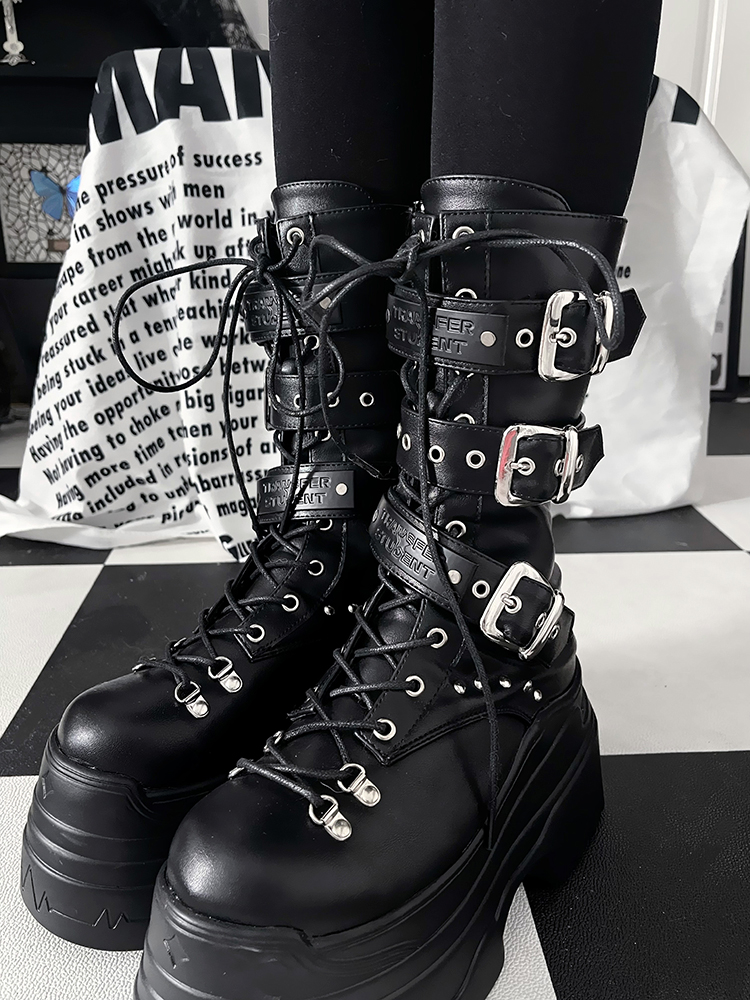 [靴]サブカル ベルト 厚底 ミドルブーツ【3IX6FC】