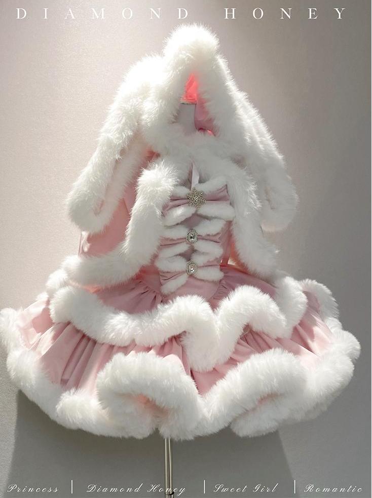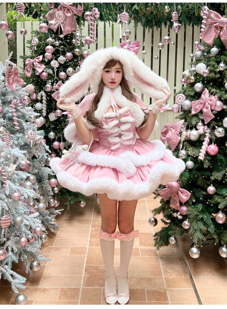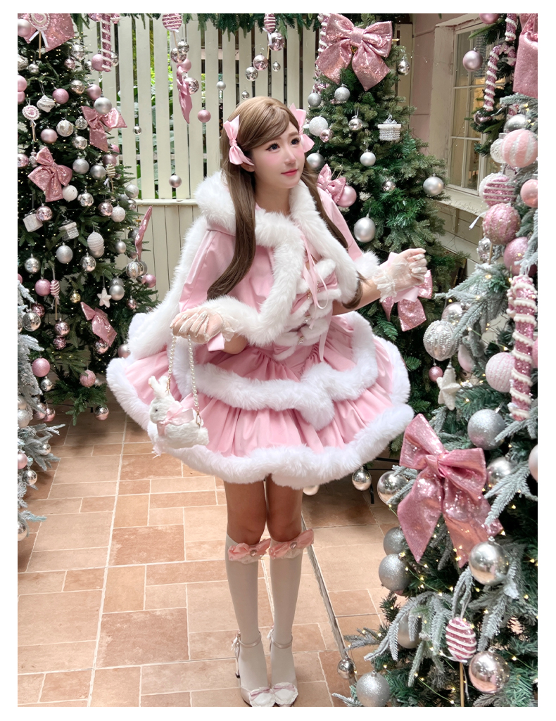 [ファッション]ウサ耳ファーケープ+ワンピース【GQ4W9Q】