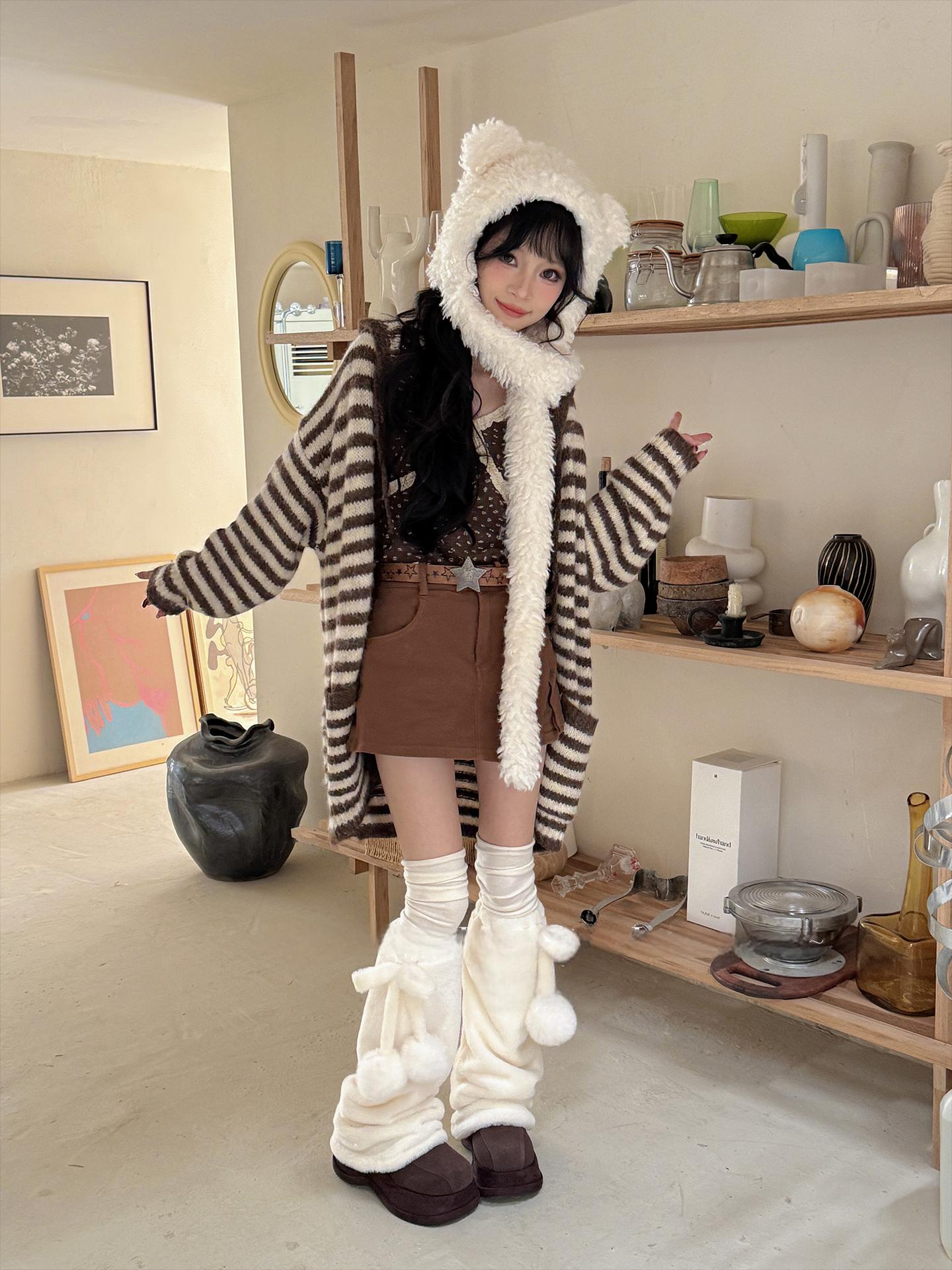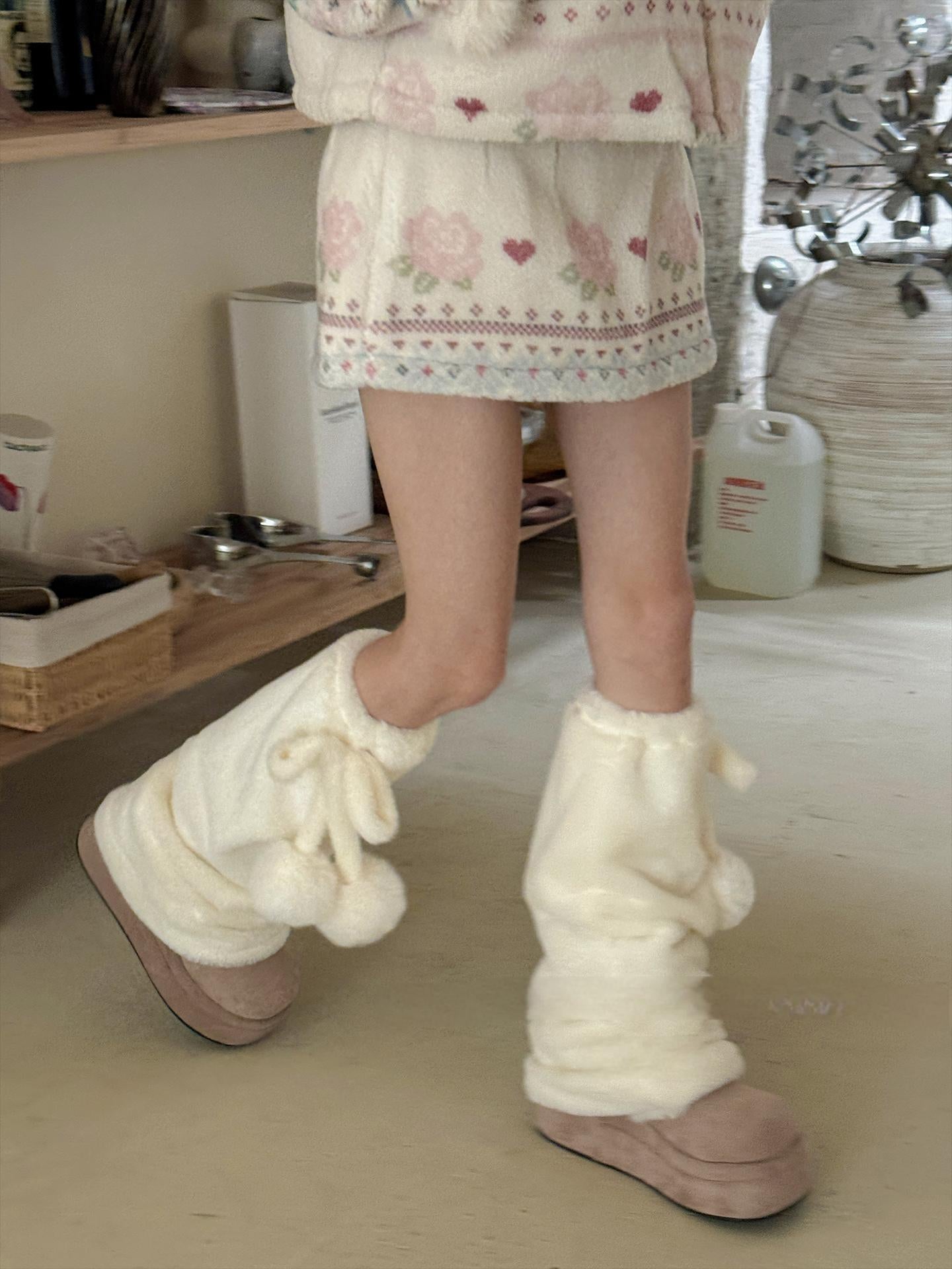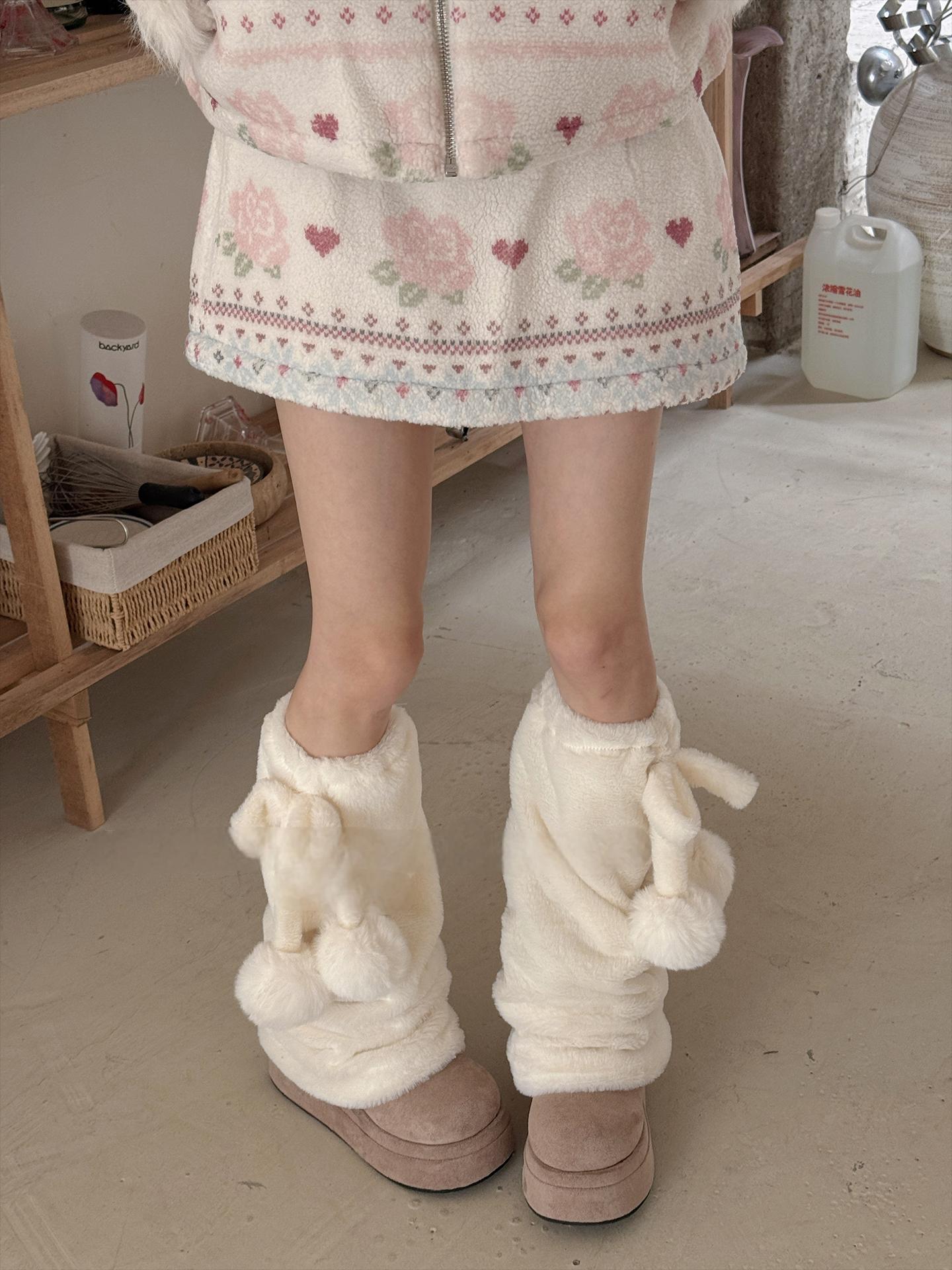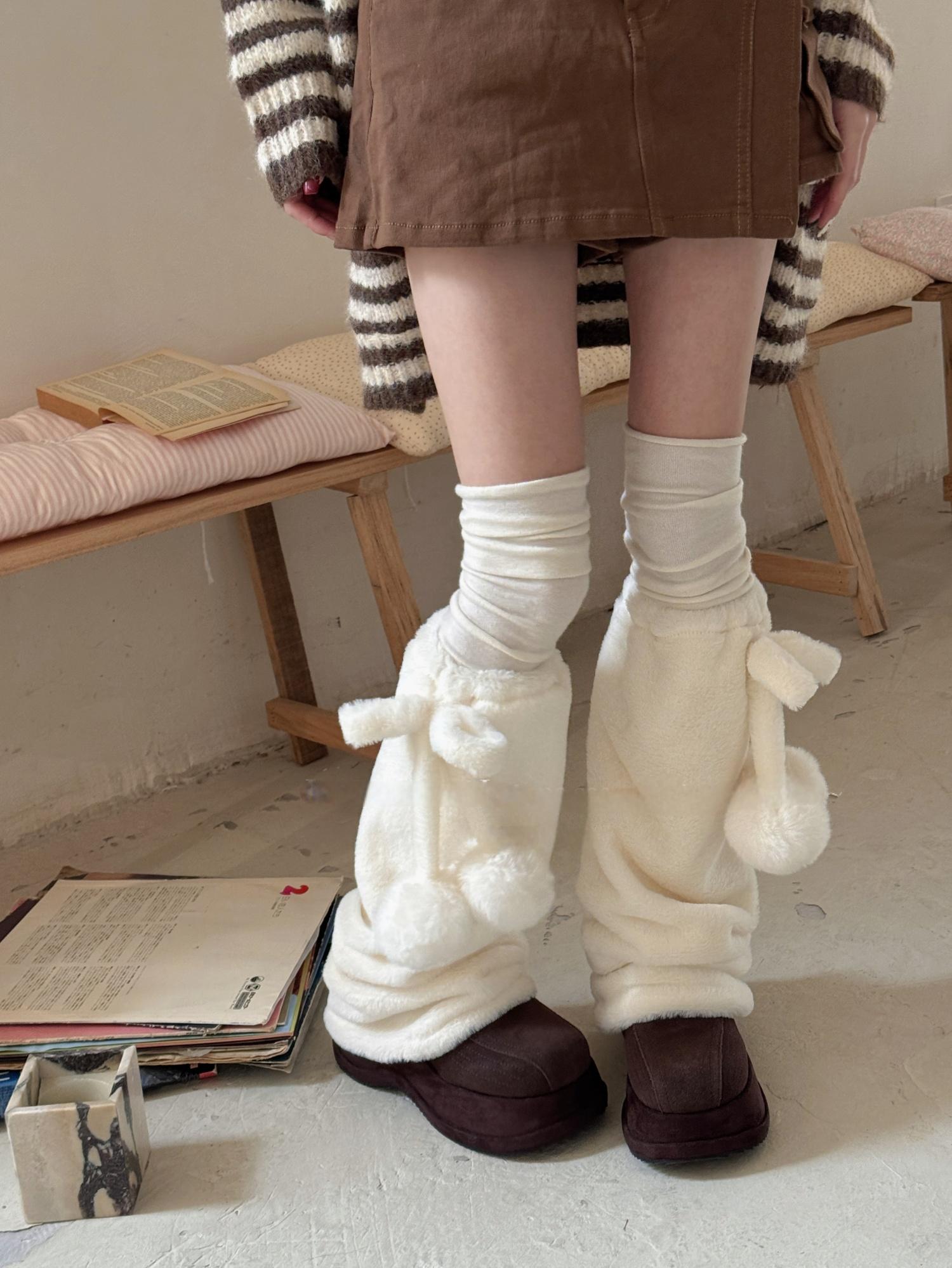 [靴下]ポンポン ファー レッグウォーマー【31WT90】