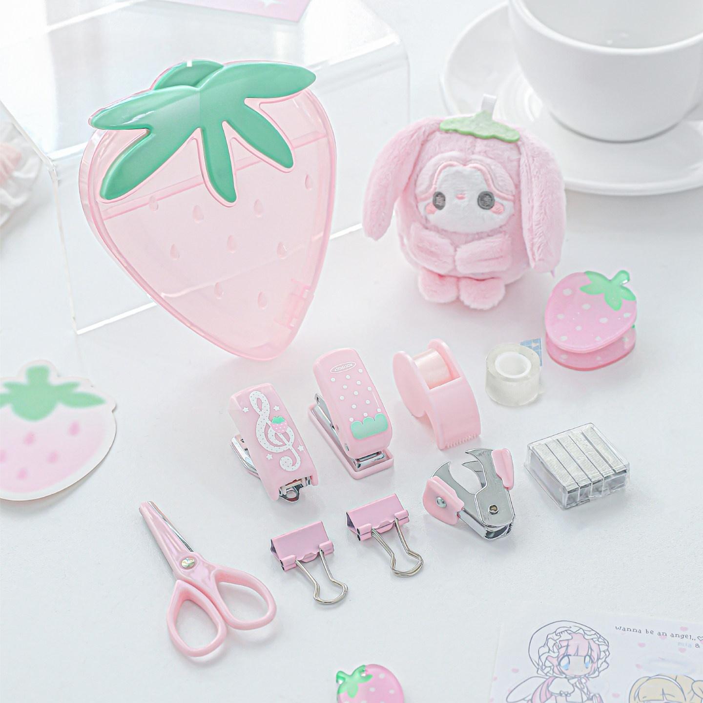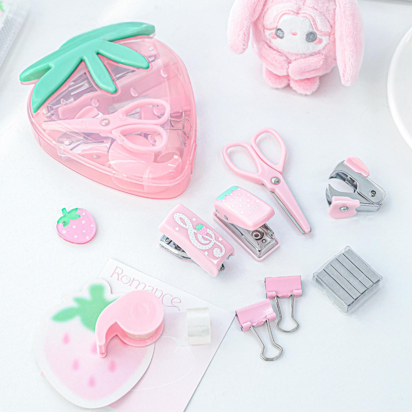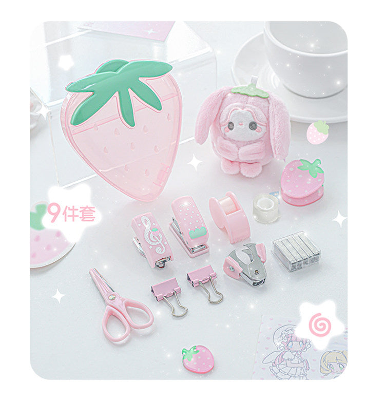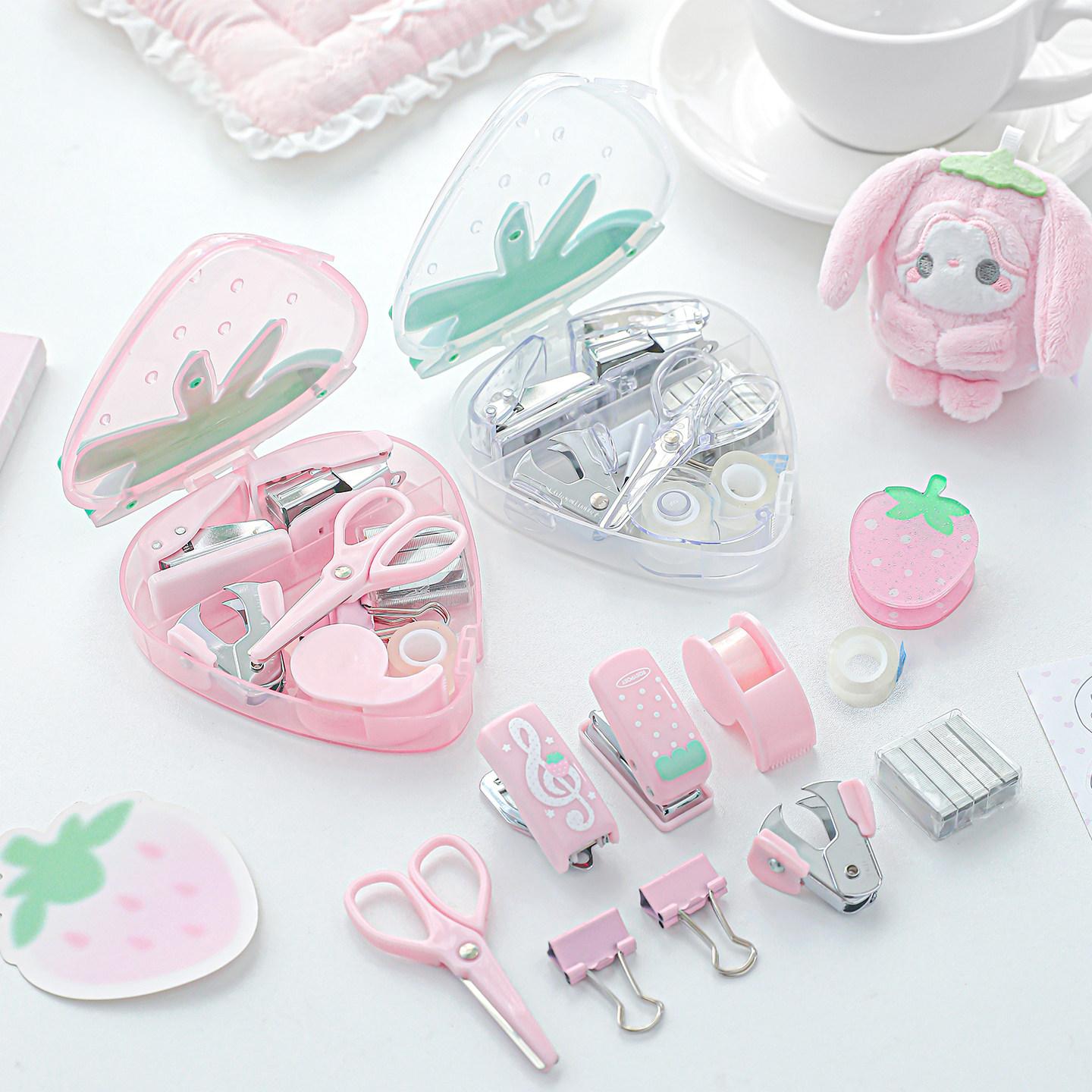 9点セット:ホッチキス/穴開けパンチ/テープカッター/テープ/ホチキス針リムーバー/ダブルクリップ/ハサミ